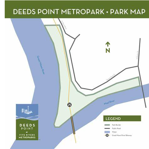 Amenities Roadside Parking Recreation Trail Access Deeds Point This small MetroPark provides an unobstructed and picturesque view of the downtown Dayton skyline, embraced by the beauty of nature.