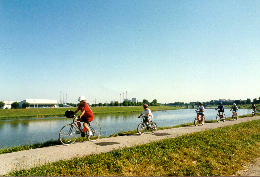 The first mile of paved bike trail constructed in 1973 along an MCD levee in Troy, Ohio at the Adams Street Bridge over the Great Miami River. It was the beginning of the regional paved trail network.
