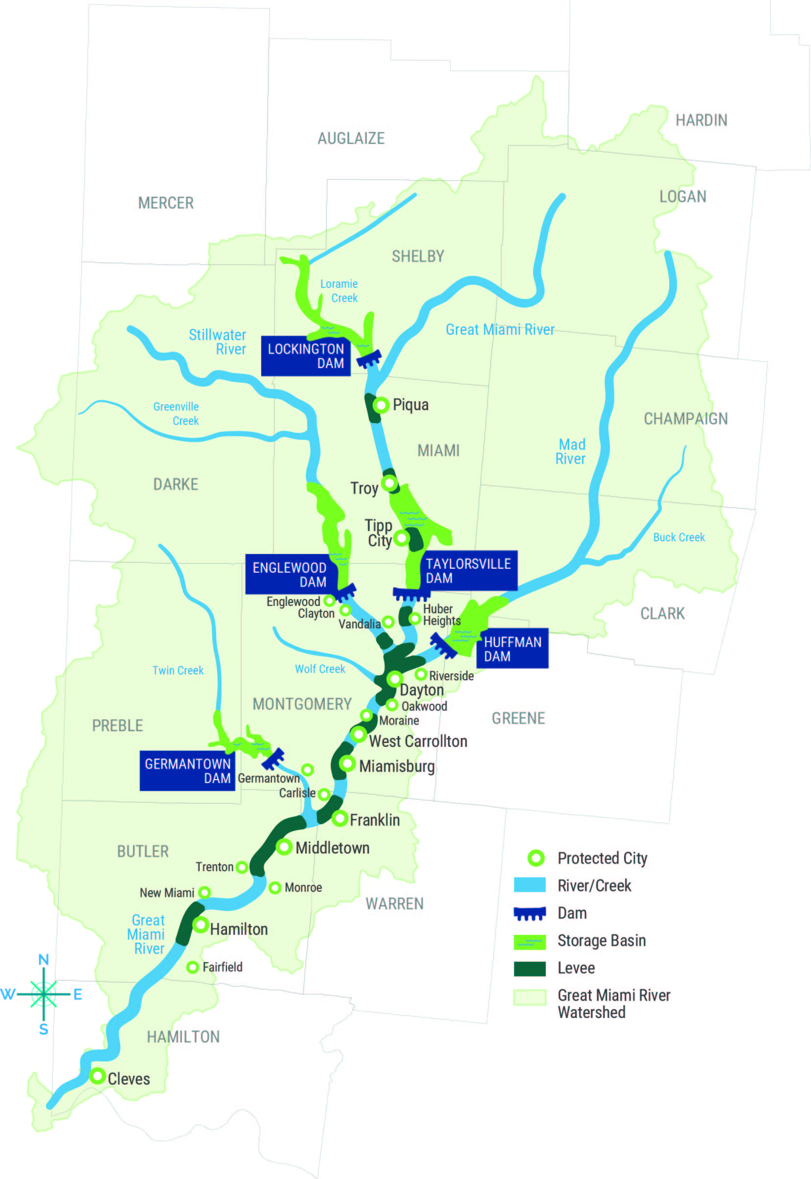 2005 High Water Event - ranked as the second highest amount of floodwater stored by the Miami Conservancy District since 1922. 37.3 billion gallons of water was stored, keeping riverfront cities dry, and the region's infrastructure and businesses thriving without fear of disruption.